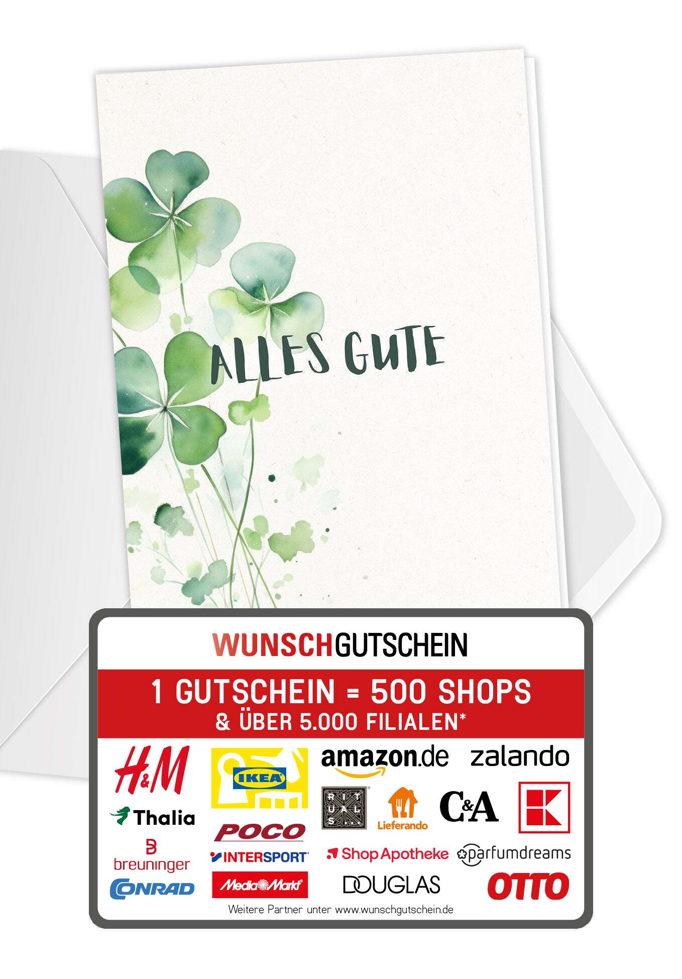 WUNSCHGUTSCHEIN ist das perfekte Geschenk: Verschenke den Gutschein, der in über 500 Partnergutscheine einlösbar ist – Von A wie Amazon bis Z wie Zalando.* Du liegst mit deinem Geschenk also immer richtig! WUNSCHGUTSCHEIN ist in den Wertstufen 15, 20, 25, 30, 40, 50, 75, 100, 150 und 200 Euro erhältlich. Es gelten die Gutscheinbedingungen für den WUNSCHGUTSCHEIN.