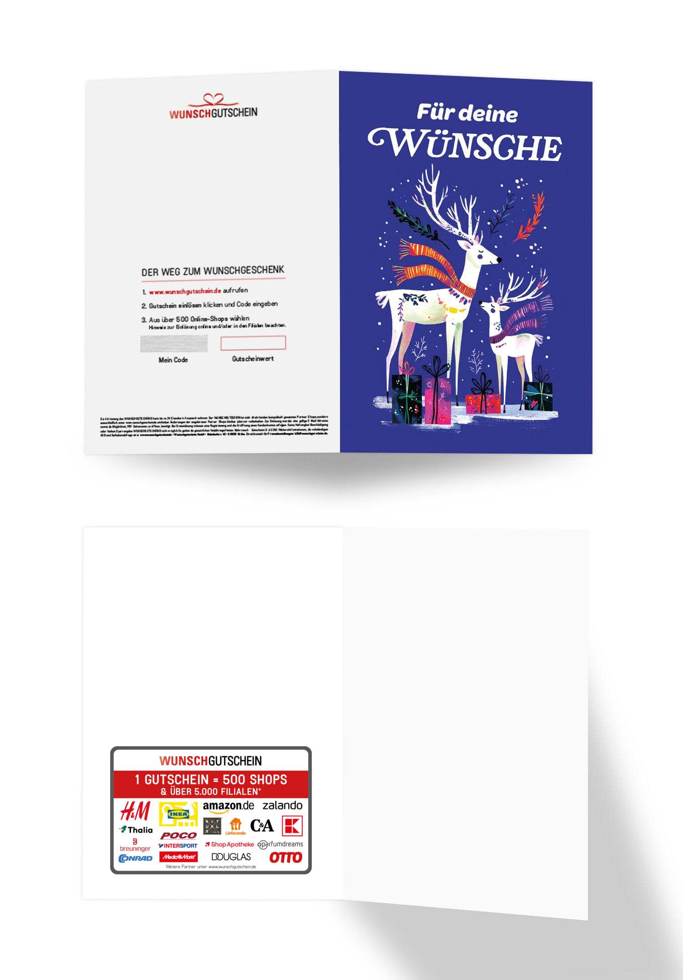 WUNSCHGUTSCHEIN ist das perfekte Geschenk: Verschenke den Gutschein, der in über 500 Partnergutscheine einlösbar ist – Von A wie Amazon bis Z wie Zalando.* Du liegst mit deinem Geschenk also immer richtig! WUNSCHGUTSCHEIN ist in den Wertstufen 15, 20, 25, 30, 40, 50, 75, 100, 150 und 200 Euro erhältlich. Es gelten die Gutscheinbedingungen für den WUNSCHGUTSCHEIN.