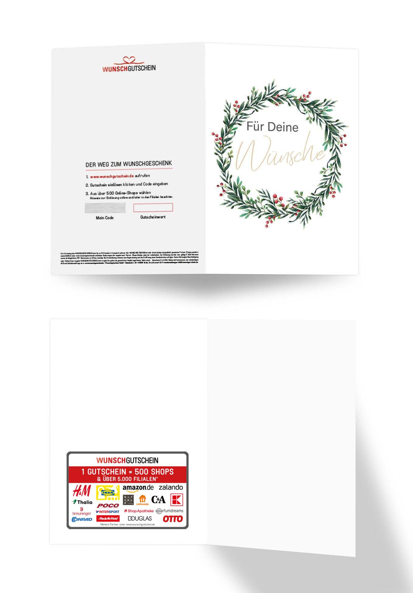 WUNSCHGUTSCHEIN ist das perfekte Geschenk: Verschenke den Gutschein, der in über 500 Partnergutscheine einlösbar ist – Von A wie Amazon bis Z wie Zalando.* Du liegst mit deinem Geschenk also immer richtig! WUNSCHGUTSCHEIN ist in den Wertstufen 15, 20, 25, 30, 40, 50, 75, 100, 150 und 200 Euro erhältlich. Es gelten die Gutscheinbedingungen für den WUNSCHGUTSCHEIN.