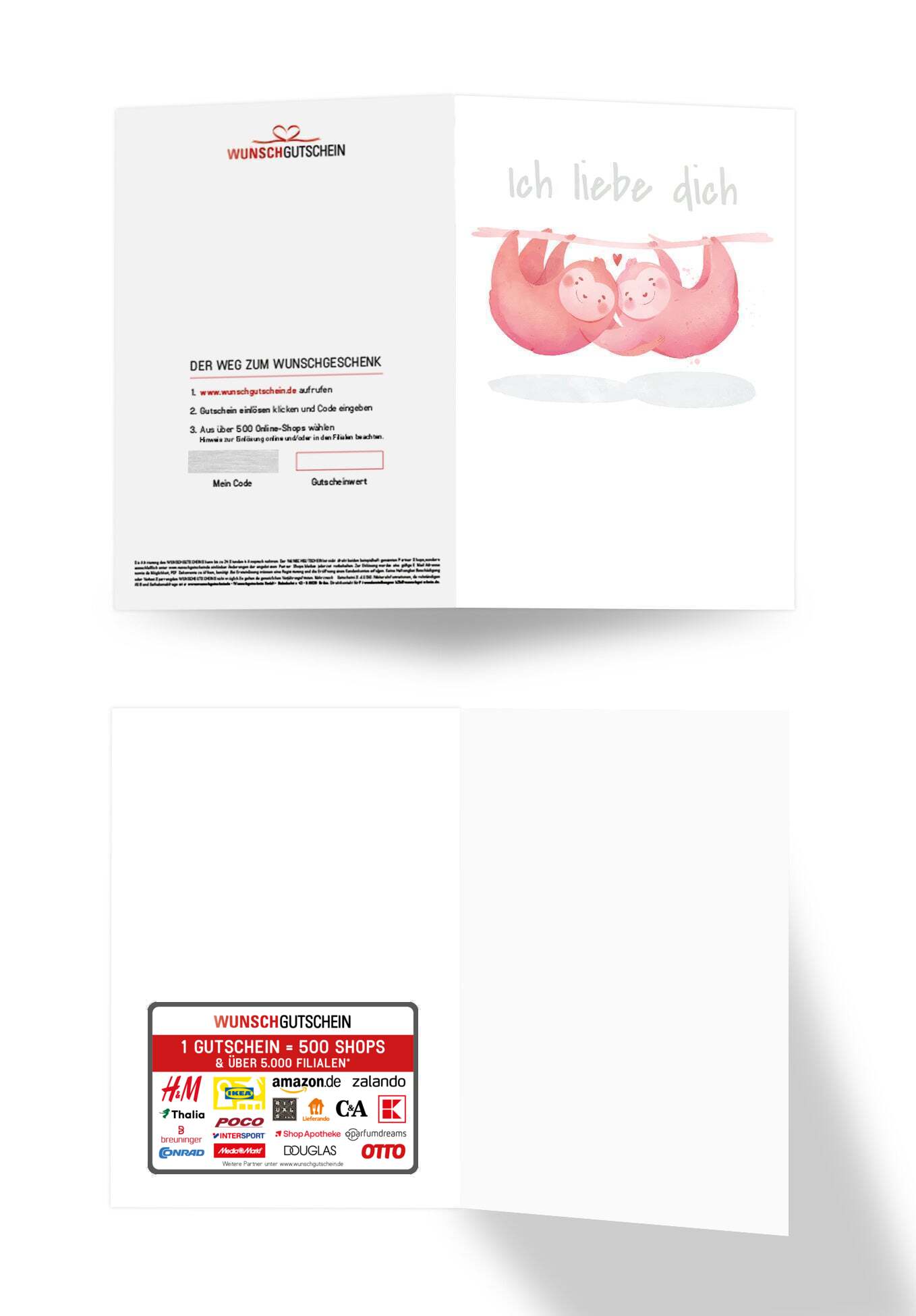 WUNSCHGUTSCHEIN ist das perfekte Geschenk: Verschenke den Gutschein, der in über 500 Partnergutscheine einlösbar ist – Von A wie Amazon bis Z wie Zalando.* Du liegst mit deinem Geschenk also immer richtig! WUNSCHGUTSCHEIN ist in den Wertstufen 15, 20, 25, 30, 40, 50, 75, 100, 150 und 200 Euro erhältlich. Es gelten die Gutscheinbedingungen für den WUNSCHGUTSCHEIN.