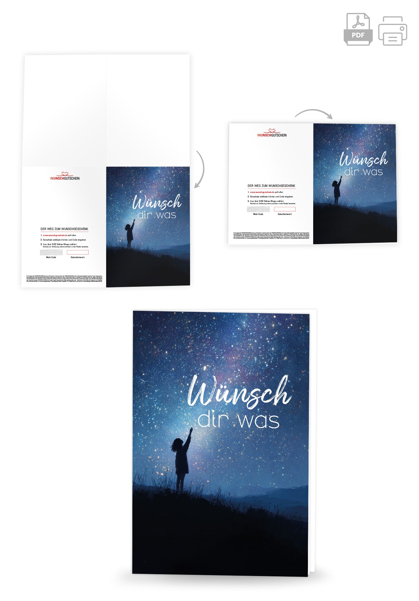 WUNSCHGUTSCHEIN ist das perfekte Geschenk: Verschenke den Gutschein, der in über 500 Partnergutscheine einlösbar ist – Von A wie Amazon bis Z wie Zalando.* Du liegst mit deinem Geschenk also immer richtig! WUNSCHGUTSCHEIN ist in den Wertstufen 15, 20, 25, 30, 40, 50, 75, 100, 150 und 200 Euro erhältlich. Es gelten die Gutscheinbedingungen für den WUNSCHGUTSCHEIN.
